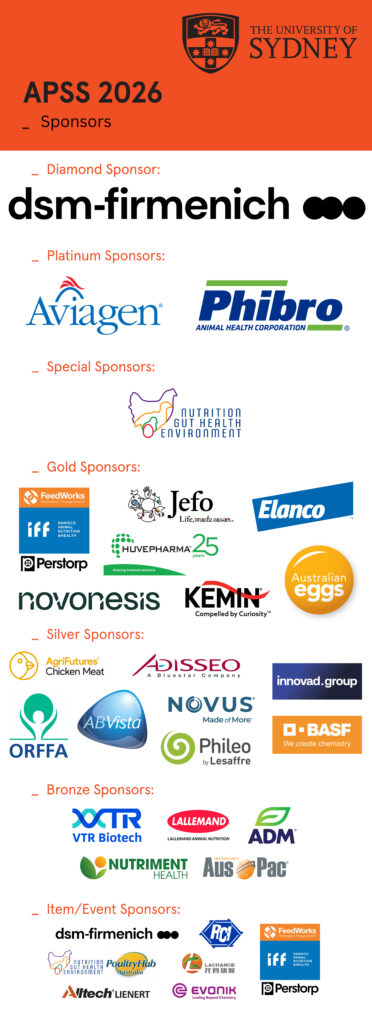 We extend our sincere thanks to all sponsors for their generous support and long-standing commitment to APSS. Their investment ensures that the symposium remains a leading platform for scientific exchange, collaboration, and innovation within the poultry sector.